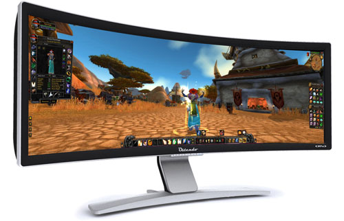 Dit beeldscherm zag het daglicht voor het eerst op de CES 2008 in Las Vegas en hoewel ik me kan herinneren dat deze kanjer de revue is gepasseerd op Techzine, ben ik er niet in geslaagd de monitor op te snorren in de archieven. Hoe dan ook, dit projectiebeeldscherm met quad-DLP-technologie heeft een beelddiagonaal van 43" en ondersteunt een resolutie tot 2880×900. Dat laatste vind ik aan de weinige kant, maar goed, dat is ook niet wat dit scherm zo speciaal maakt. Het bijzondere aan deze monitor is haar gebogen vorm, wat zorgt voor een panoramisch gevoel. Dat maakt het scherm bijzonder geschikt voor racing simulators, first person shooters en MMORPG’s. Volgens de maker van het beeldscherm, Ostendo, wordt het vooral gekocht door bedrijven en militaire organisaties voor simulatiedoeleinden. Consumenten die er eentje willen, kunnen zich tot Ostendo wenden met 6500 dollar in de hand.