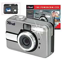 De nieuwe Trust 760 PowerC@m CCD is een compacte digitale camera met accenten in chroom. De camera heeft een optische Panasonic CCD sensor met een resolutie van 2 Megapixel. Door interne interpolatie kan de camera beelden maken met een resolutie van 4 megapixel. Verder heeft de Trust 760 PowerC@m CCD een intern geheugen van 8 MB dat jen met een optionele SD-kaart tot maximaal 512 MB kan uitbreiden. Wanneer je de USB kabel van de camera op de computer aansluit, wordt de camera als verwijderbare schijf herkend en zijn de opnamen na een zeer snelle overdracht direct toegankelijk. De nieuwe camera van Trust kan foto’s in een diavoorstelling tonen. Hierbij worden de foto’s achtereenvolgend getoond op het vier cm kleuren TFT LCD scherm met een tussentijd van ongeveer twee seconden per foto. De Trust 760 PowerC@m is Digital Print Order Format (DPOF)-compatibe, zodat je foto’s direct kan uitprinten zonder tussenkomst van een pc.