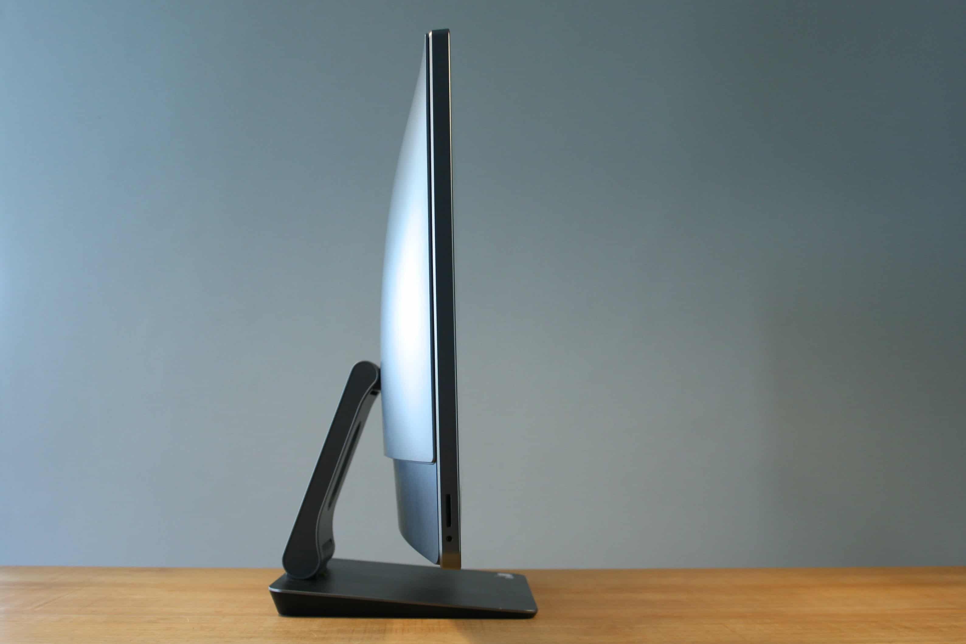 Op de styling van de XPS kunnen we niet heel veel aanmerken. Deze is strak en het geheel voelt degelijk aan. De zes ronde gaten voor de ‘sound bar’ springen direct in het oog en breken optisch het massieve front van de behuizing. De voet van de touch-uitvoering is geheel uit aluminium gefreesd. Deze is loodzwaar en oogt oer-solide.
