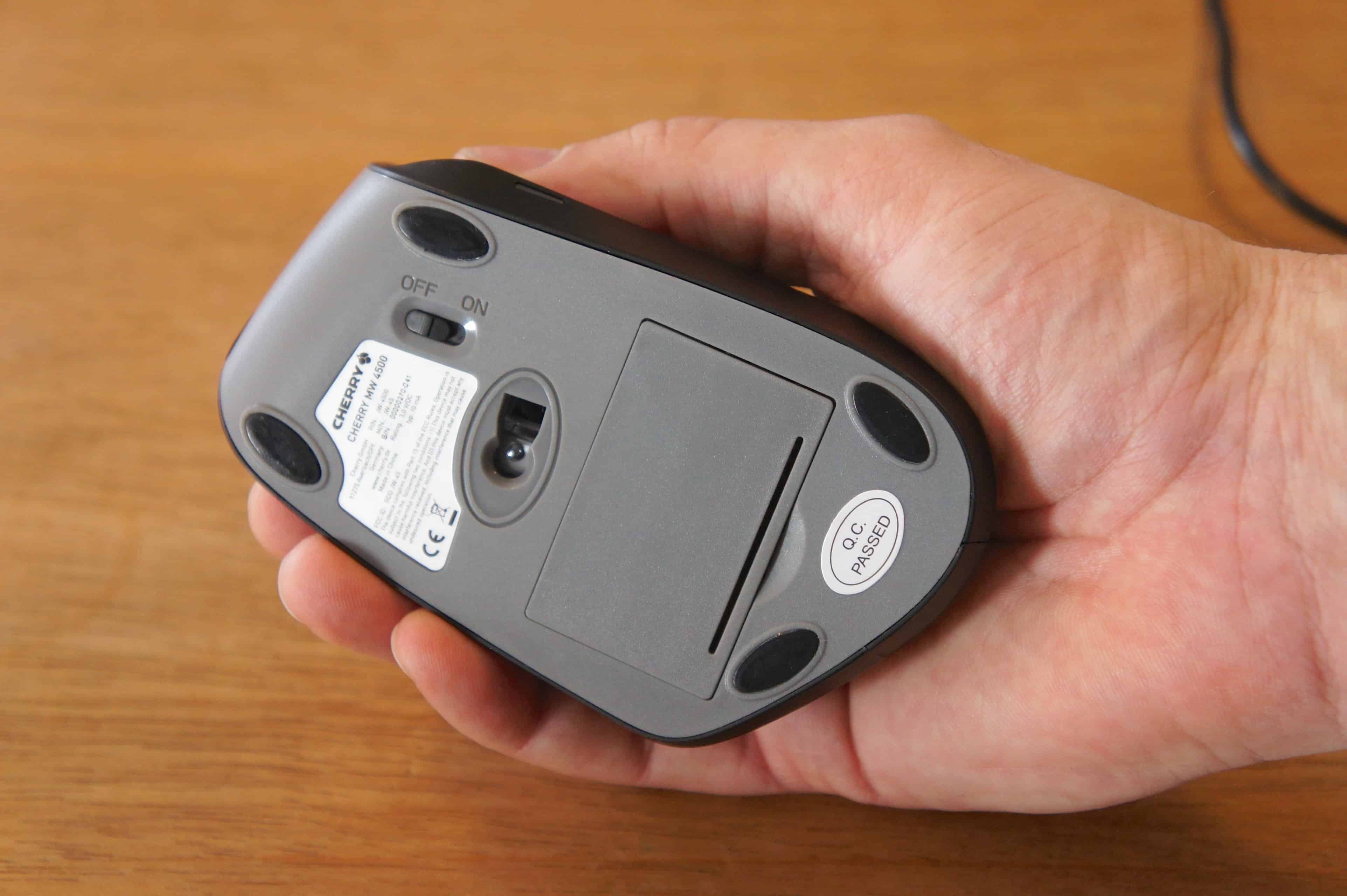 De besturing van de Cherry MW4500 is precies. De gevoeligheid van de optische sensor is af te stellen op drie niveaus; 600, 900 en 1200 dpi. De muis werkt op twee AAA-batterijen en om het batterijniveau te monitoren heeft de fabrikant links onder de duim-positie een LED opgenomen die de gebruiker tijdig informeert de batterijen te wisselen. Om de batterij te sparen kan de muis met een schakelaartje aan de onderzijde worden uitgeschakeld.