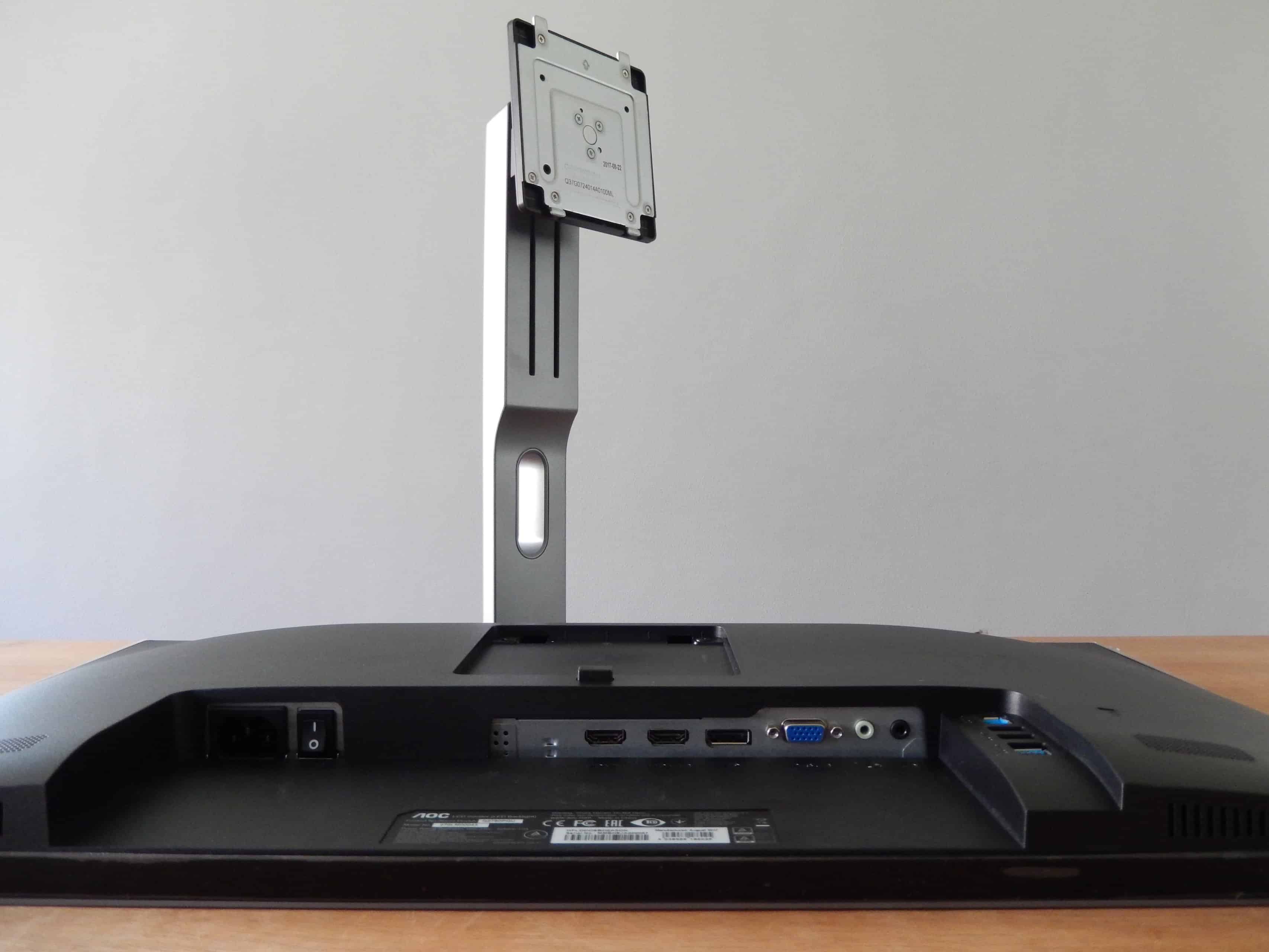 Wil je de monitor liever aan de wand bevestigen, dan levert AOC voor dit doel een optionele wall-mount arm. Een VESA-mount is ten tijde van schrijven nog niet beschikbaar.