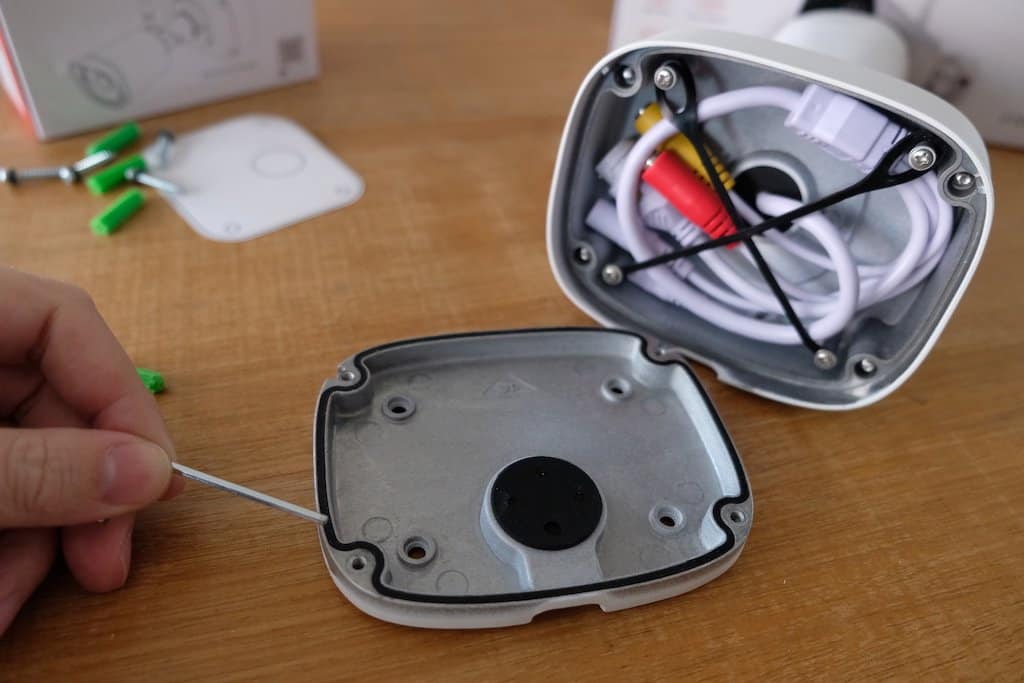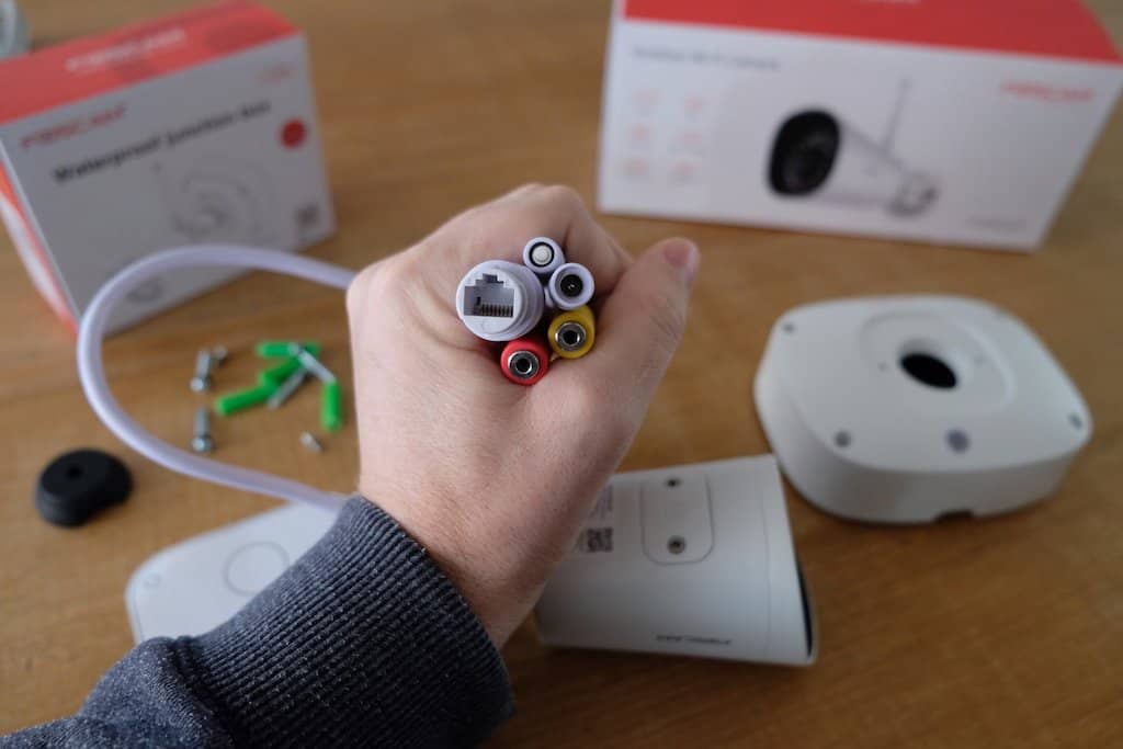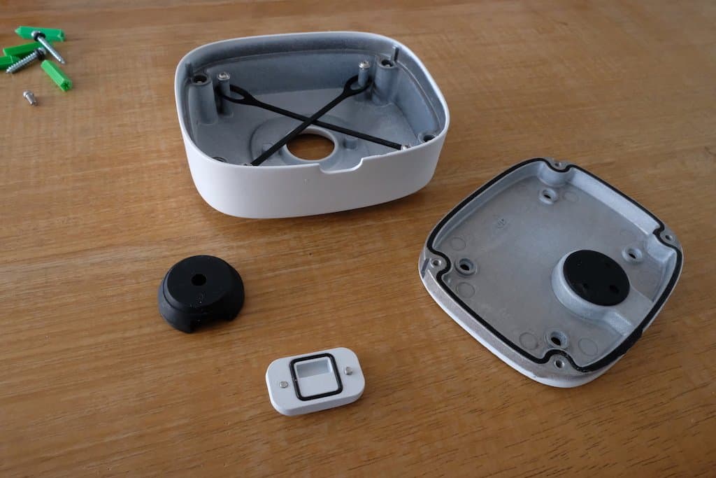 Nadat we contact opnemen met de importeur geeft deze aan dat hiervoor een metalen installatiedoos wordt geleverd waarop de camera kan worden geschroefd. Deze doos heeft dezelfde bouwkwaliteit als de camera zelf. We besluiten deze doos dus te bestellen. Wanneer we de FAB99 Waterproof Junction Box, zoals deze in vaktermen wordt genoemd, inspecteren snappen we dat deze box niet kosteloos met de camera wordt meegeleverd; de bouwkwaliteit is in een woord subliem. Alle aansluitingen en pasvlakken zijn keurig voorzien van o-ringen en rubberen pakkingen. Vocht en ongedierte krijgen hiermee geen kans om binnen te dringen.